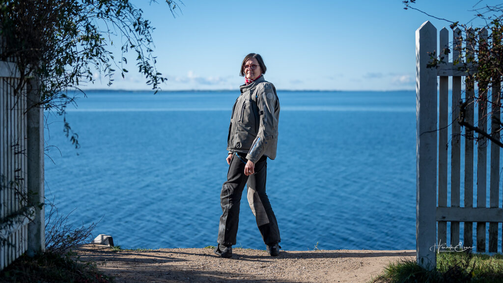 Når man har passeret fyret rejser der sig en fantastisk udsigt ud over Lillebælt. Til venstre finder du et bord/bænk sæt og en trappe som giver adgang til stien som fortsætter langs plateauet længere 6 meter længere nede hvor der for enden er trappeadgang de sidste meter ned til selve stranden.